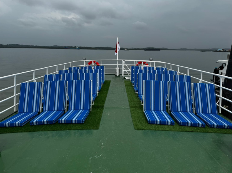 The D’Camel Max is a modern fast boat featuring 137 regular seats plus 12 VIP seats. It is powered by six 300hp Suzuki engines, delivering strong performance and reliability. The vessel is fully insured and equipped with essential safety gear including life rafts, life jackets, life rings, and a first aid kit.