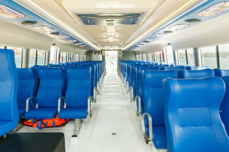 BlueWater Express IX was launched in 2017, this fast boat is powered by six 250hp Honda engines, reaching speeds of up to 35 knots. Operated by a crew of 8, it features a sun deck and a comfortable ventilated cabin. All necessary safety equipment is provided on board.